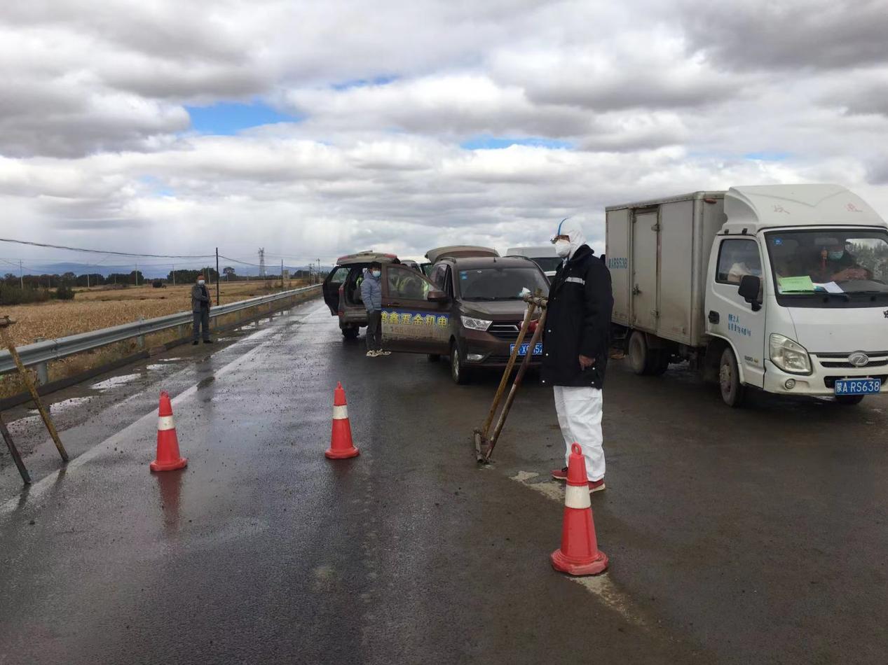 項目部黨支部書記杜騫,第一時間安排人員對北門卡口進行布置,安排采購疫情物資(醫(yī)用口罩、防護服、測溫槍、消毒液等),與10月1日10點左右在新機場北門疫情防控卡點布設(shè)完畢,配備了12名項目部管理人員(8小時三班倒)在卡口進行疫情防控。新機場北門疫情防控卡點人員對過往車輛、人員進行登記,掃碼、查看行程卡、核酸報告、登記來源地、去往地點。對無48小時核酸報告的人員進行勸返。