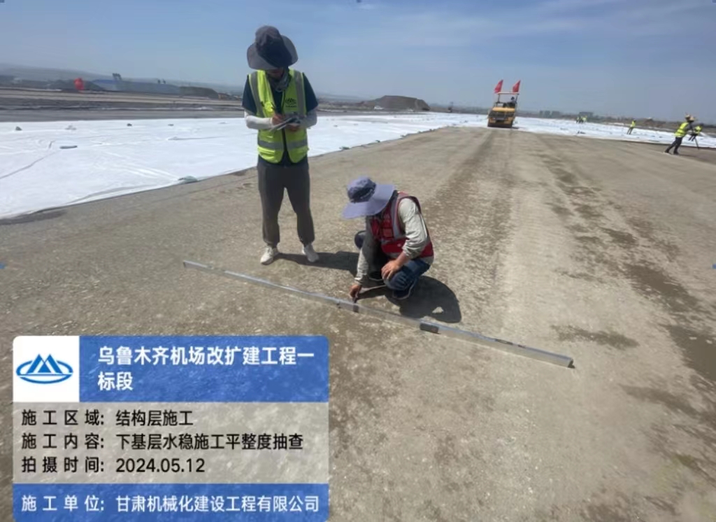 2024年5月11日,伴隨著第一車水泥穩(wěn)定砂礫混合料緩緩倒入攤鋪機(jī)料斗,標(biāo)志著由我司承建的烏魯木齊機(jī)場(chǎng)一標(biāo)段水穩(wěn)基層施工正式拉開(kāi)序幕。